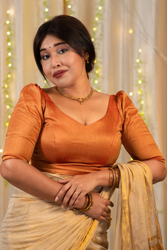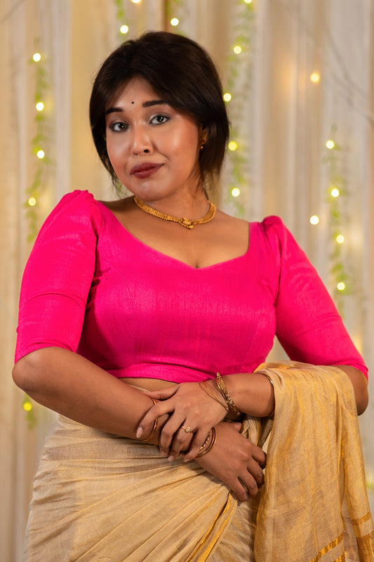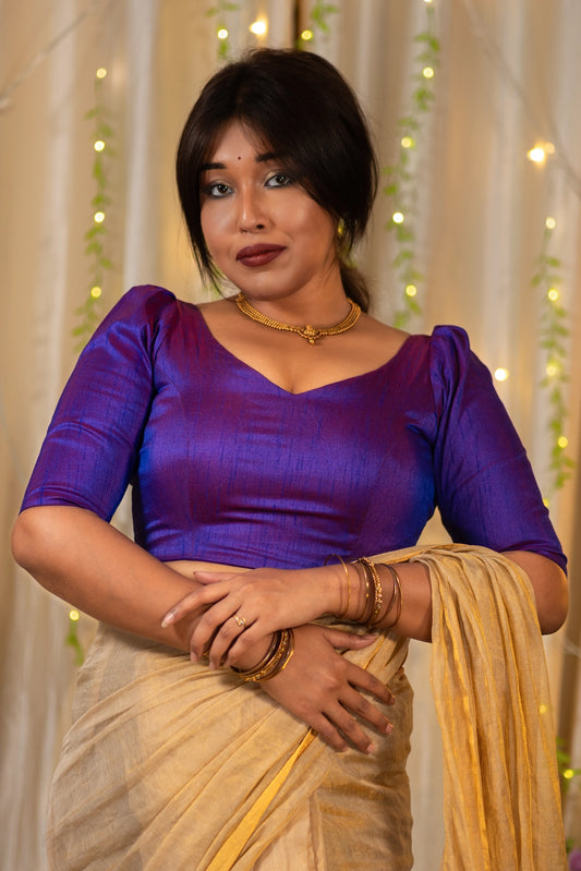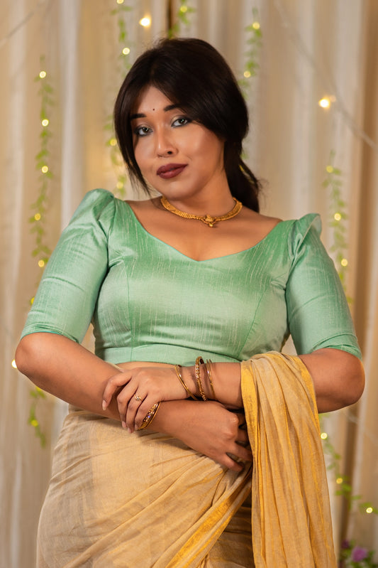 Tarana Puff Sleeve Silk Blouse for Saree
