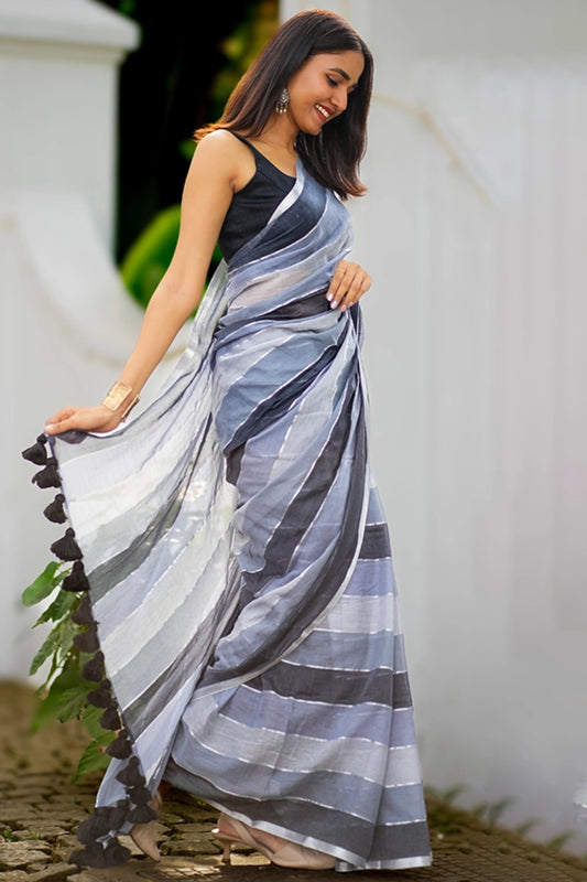Cloudy Silver Cap Sleeve Readymade Blouse