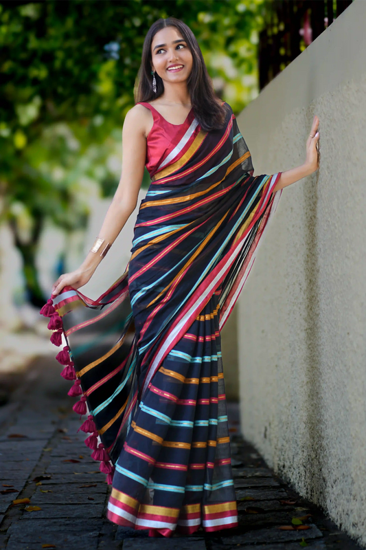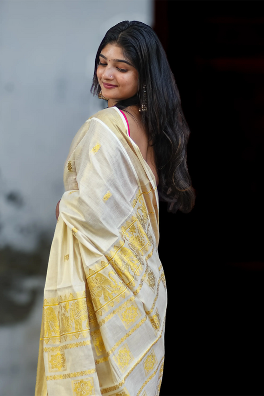 The Banarasi Blouse Collection is an amp-up addition to infuse royalty in your style. Intricated with intertwining floral motifs featuring a gold work and compact weaving, this readymade blouse is a must-have for your traditional events.