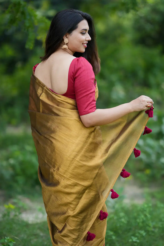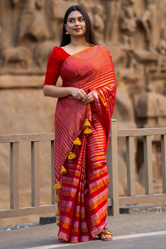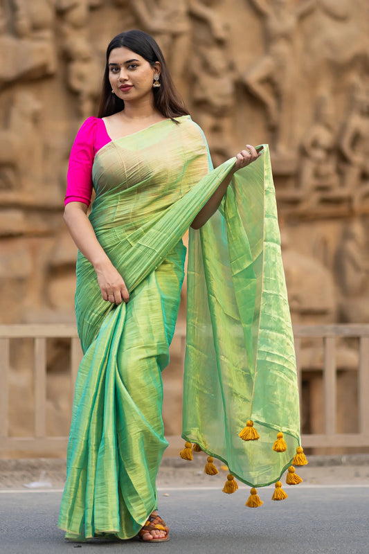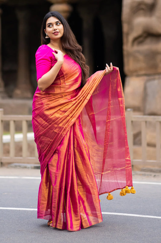 Introducing Evara Tissue Cotton Sarees: Crafted from premium cotton and tissue zari, these sarees will have you slaying in captivating colors and designs. Elevate your fashion game with these wedding and traditional stunners - a treat for your fabulous self!