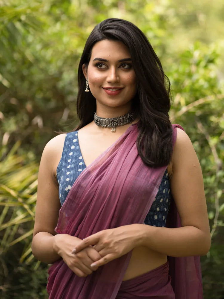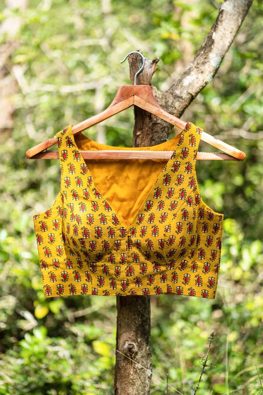Just before dawn, the early morning sky inspires this Matutine hand-printed sleeveless blouse collection. The beautiful shades are a ray of hope and a reminder that something new will come in their place! How empty spaces fill up with colours as they end!