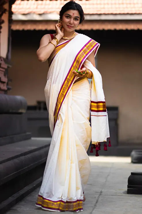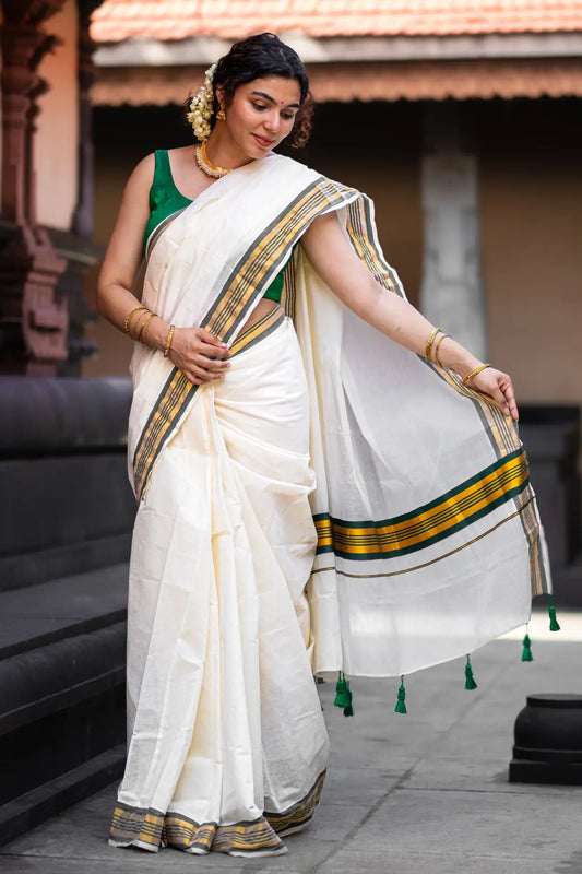 Namasya Kerala Kasavu Saree.