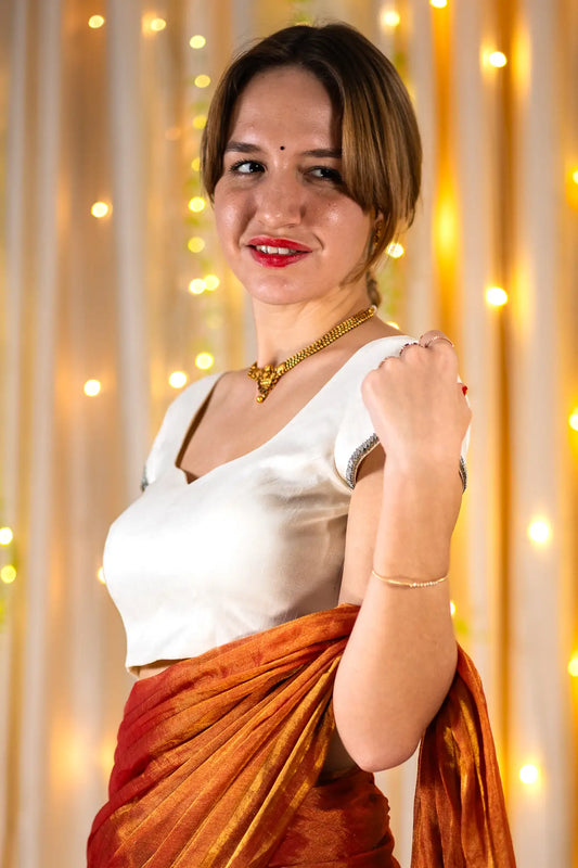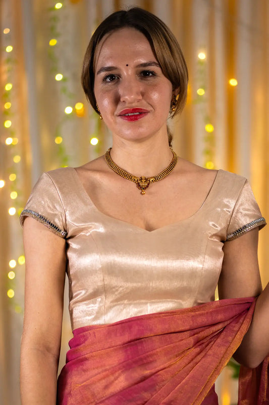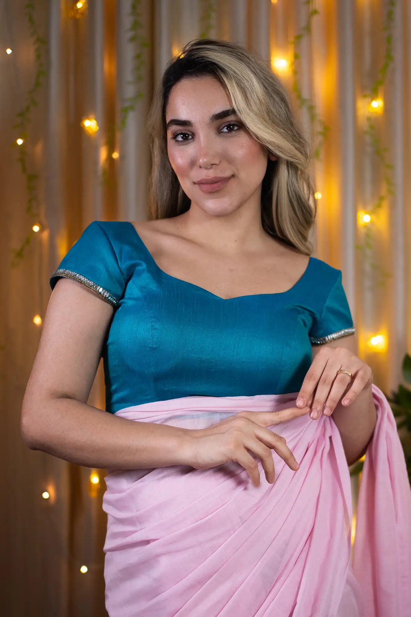 Cloudy Silver Cap Sleeve Readymade Blouse