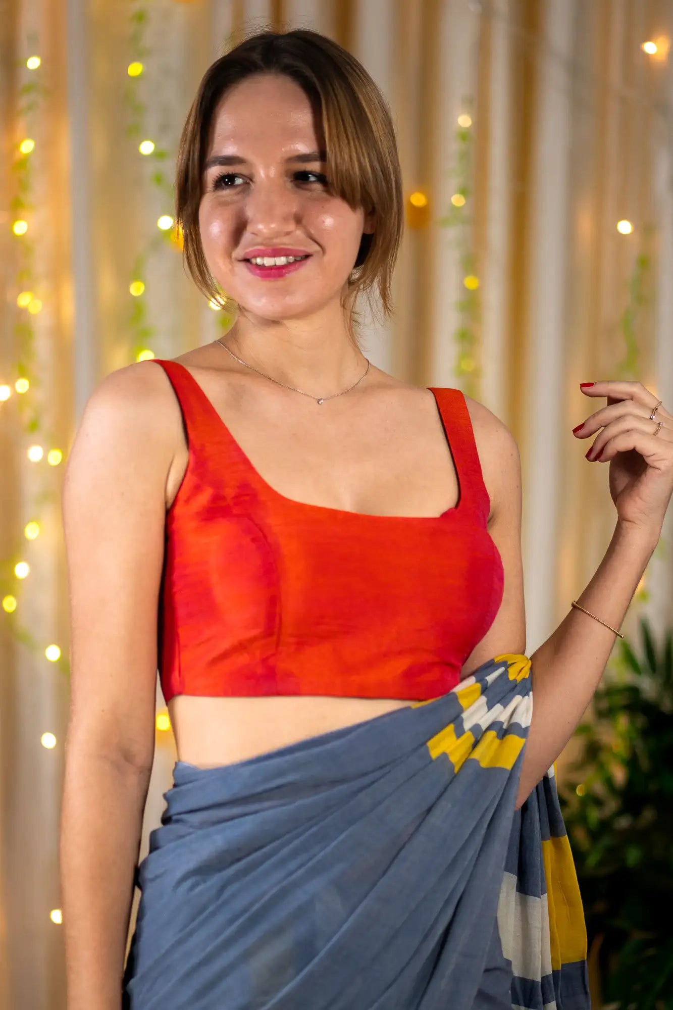 This cherry red u-neck sleeveless blouse is our in-house favourite when we want to make a statement! This back hook blouse allows you to tackle your day with ease, designed for the finest, created from premium quality fabric for ultimate comfort. Put your best foot forward with a blouse that makes you dazzle!