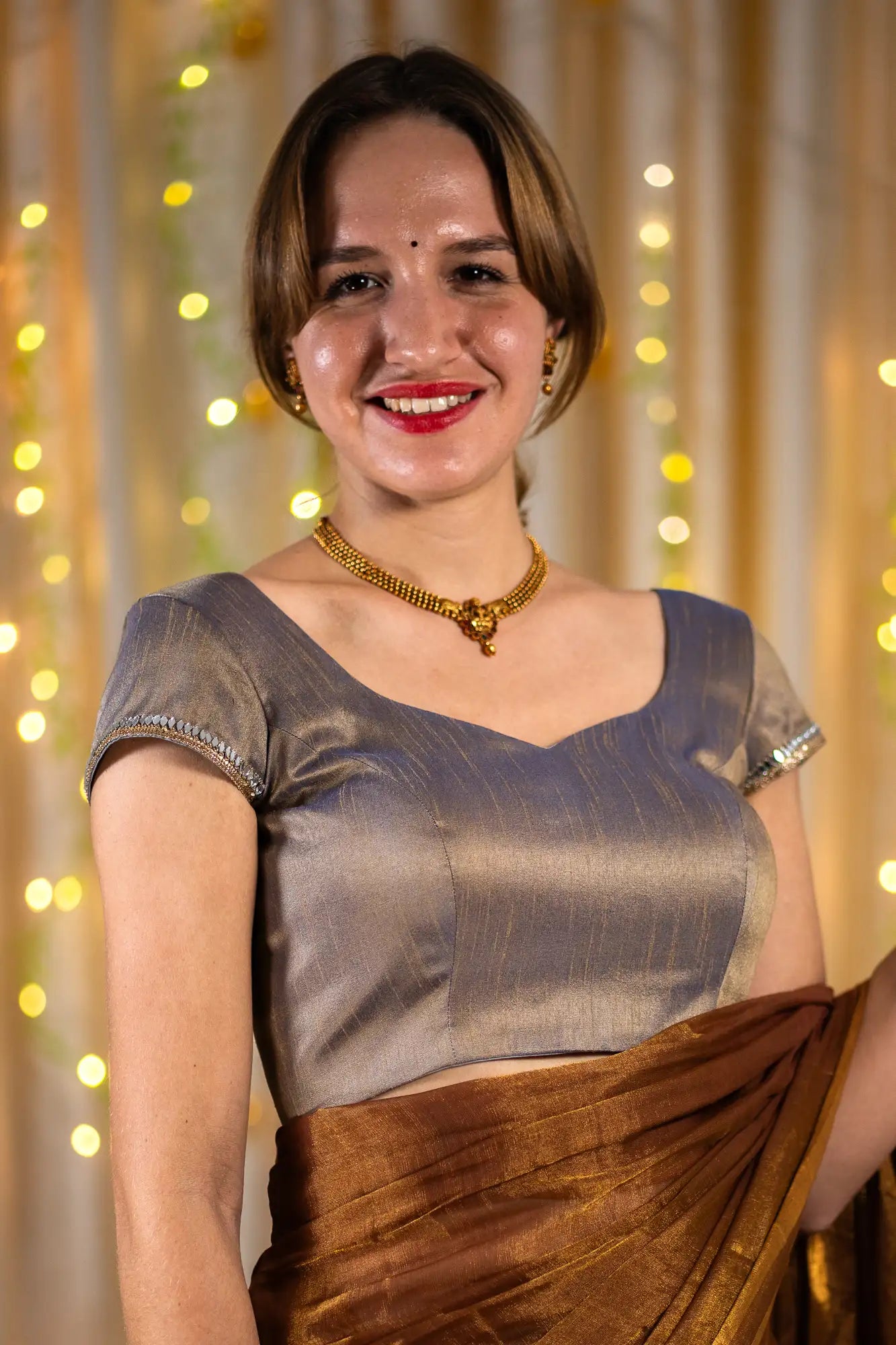Cloudy Silver Cap Sleeve Readymade Blouse