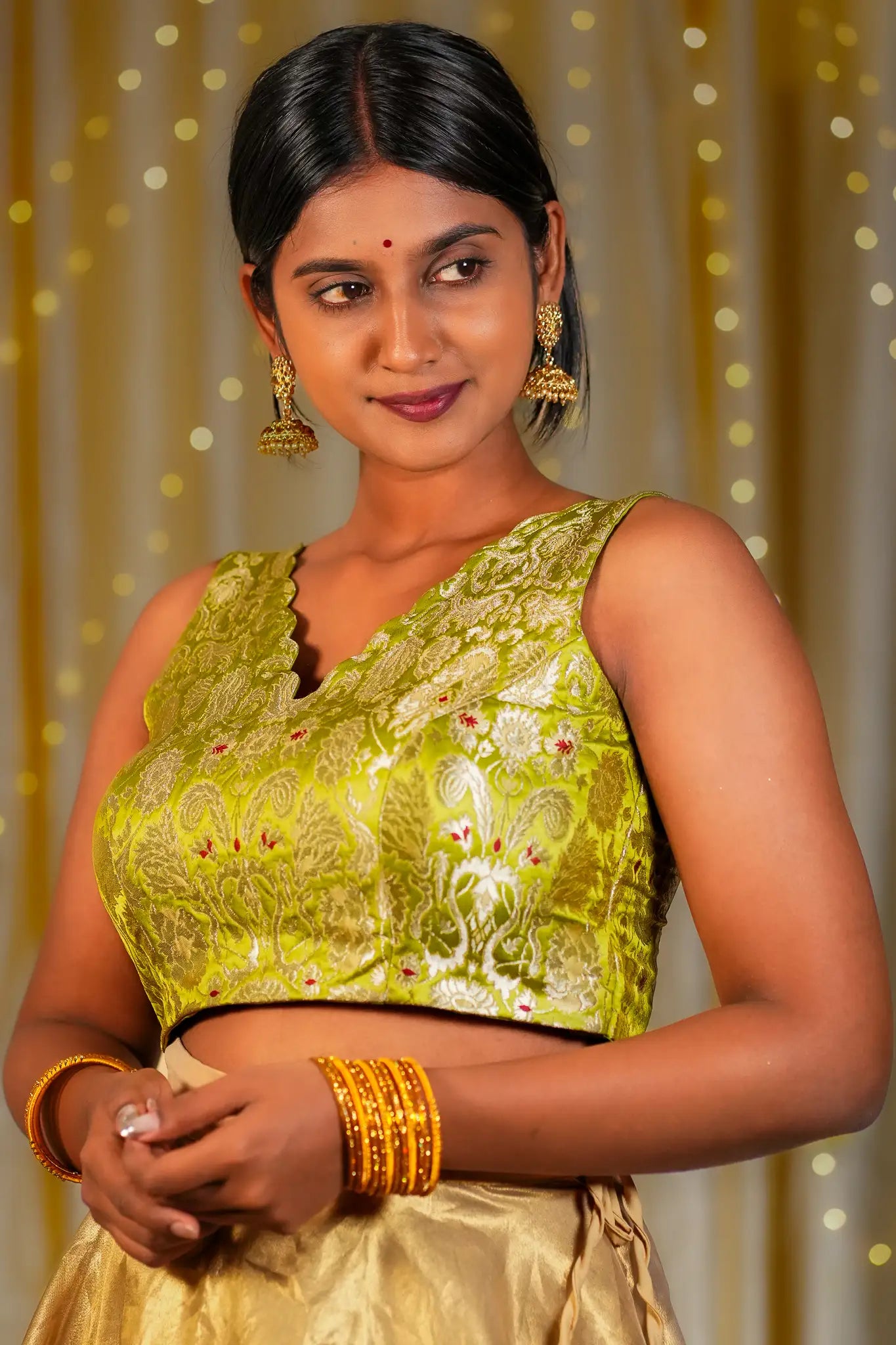 Little Zest V-neck Banarasi Blouse