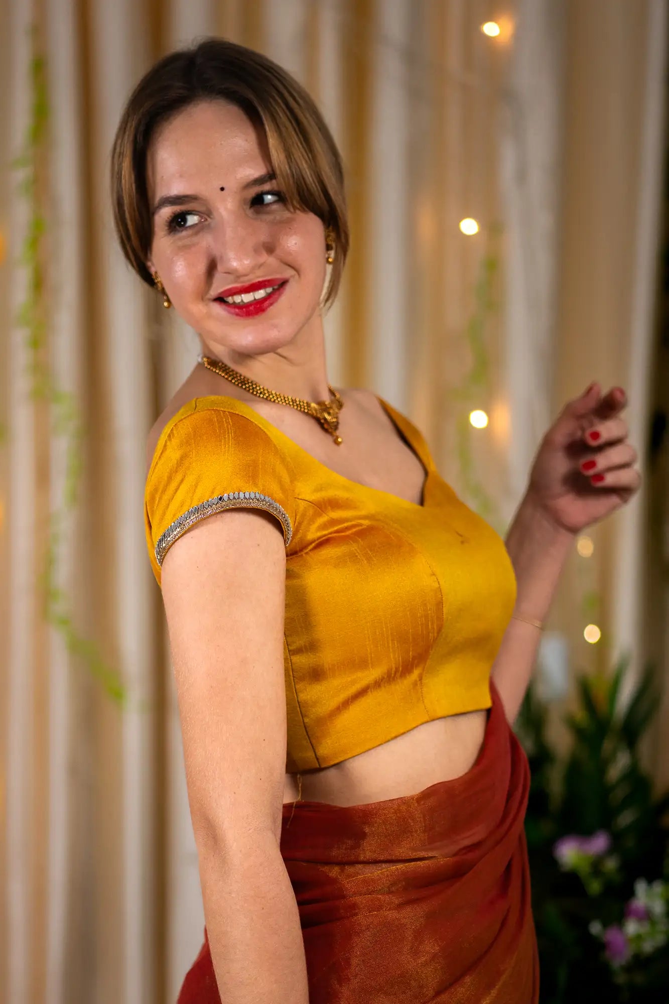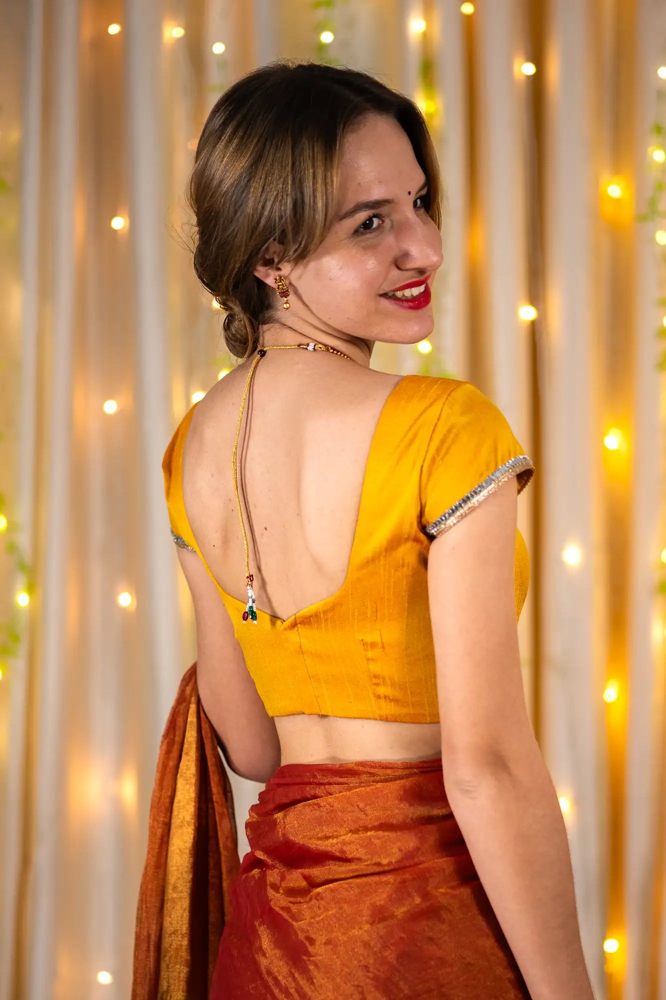 Mustard Yellow Cap Sleeve Readymade Blouse