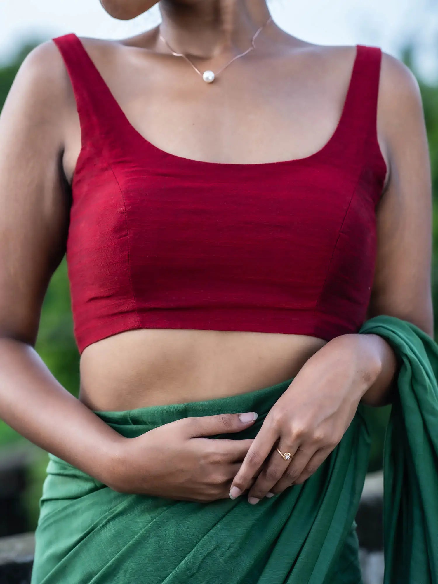 Be the life of every party with this maroon sleeveless blouse! Its gorgeous u-neck will give your silhouette an enticing appeal, and the maroon shade will give off a commanding aura. Look and feel premium with this classy u-neck blouse and flaunt your individuality in style!